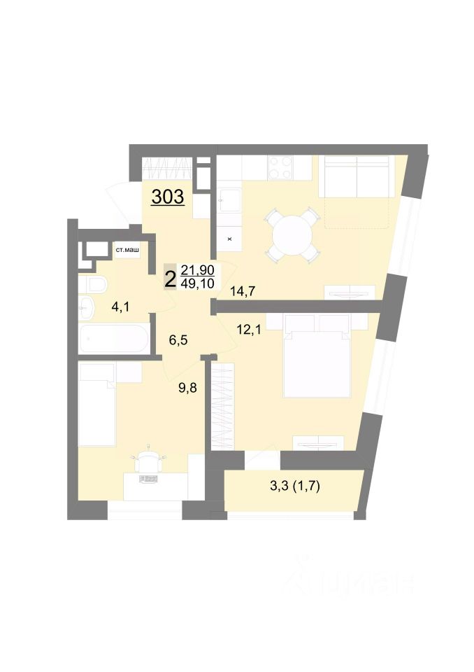 Продаётся 2-комнатная квартира в строящемся доме (Секция С1), срок сдачи: III-кв. 2026, общей площадью 48.9 кв.м., на 12 этаже. Многоэтажные жилые дома по ул. Металлургов от ГК "Астра". 1 очередь строительства