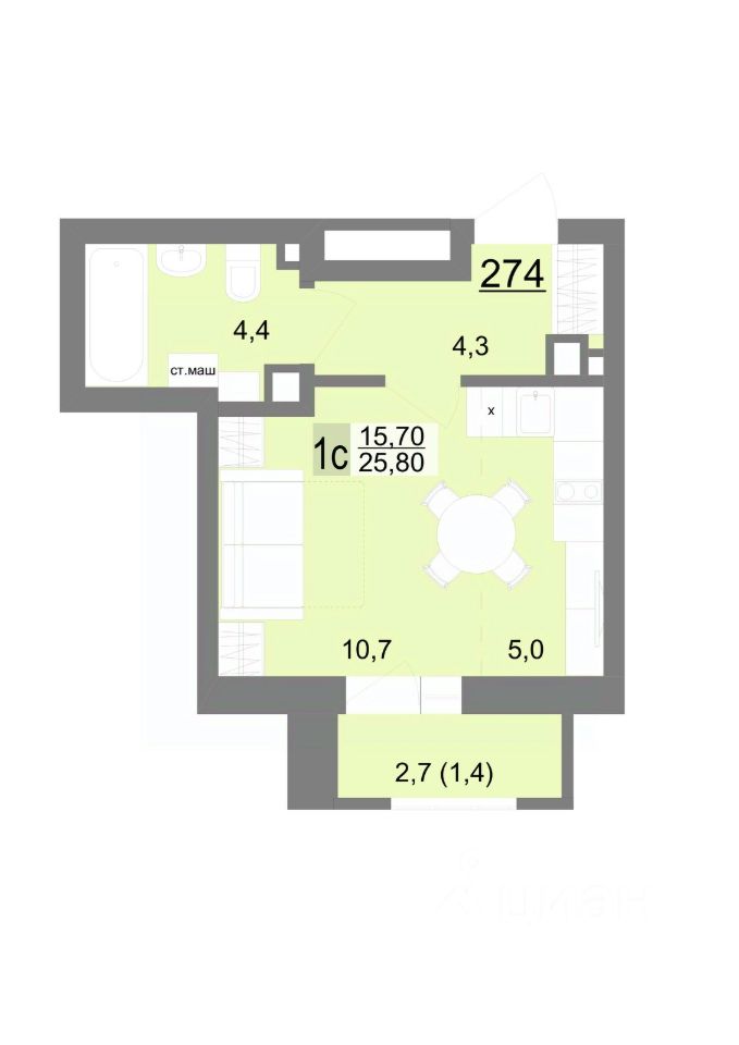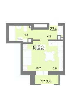 Общая площадь25,8 м²
