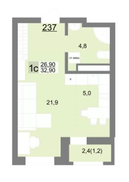 Общая площадь32,9 м²