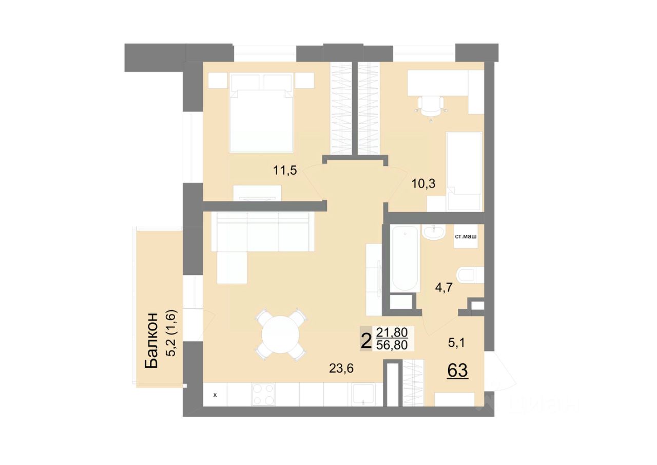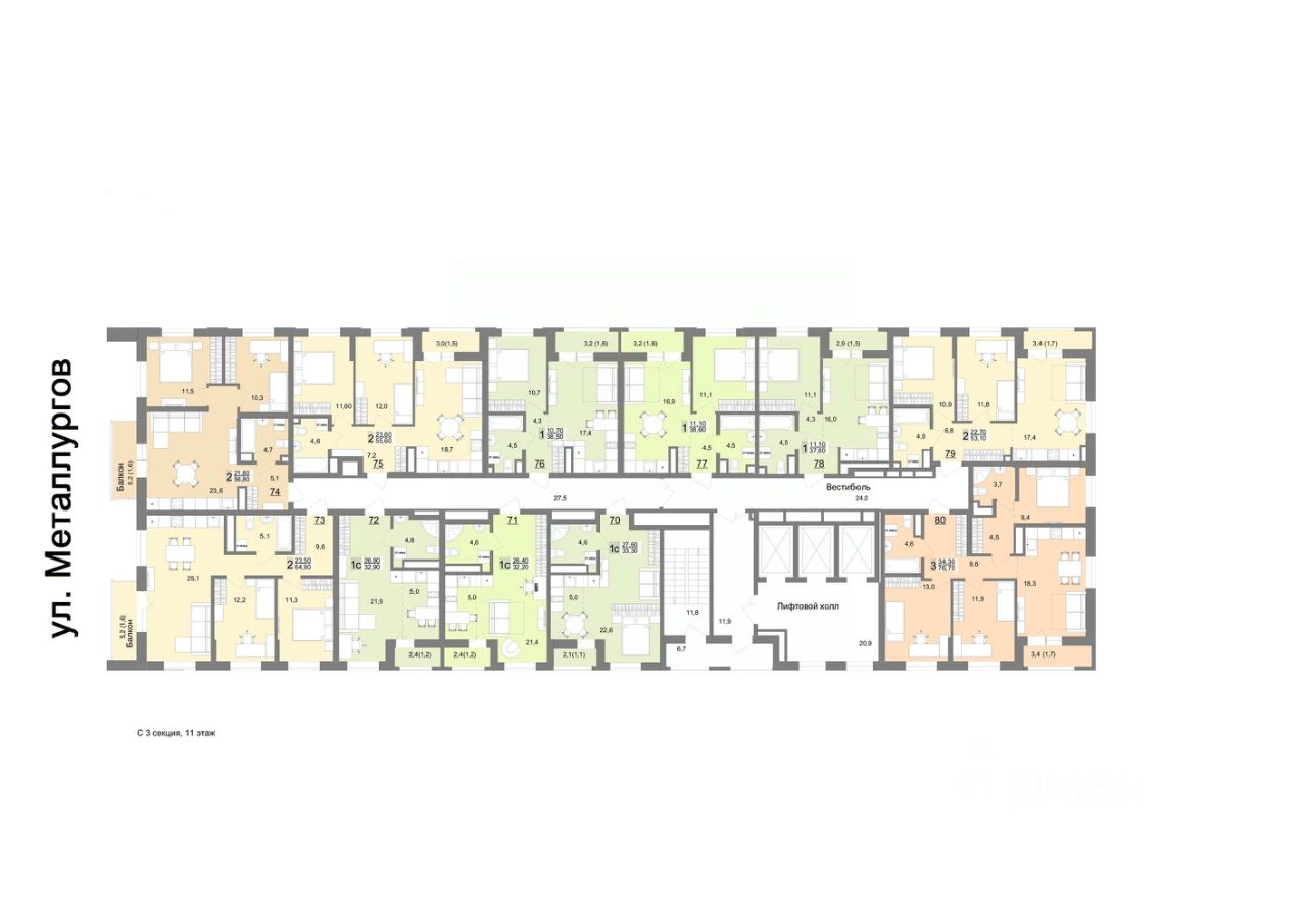 Продаётся 2-комнатная квартира в строящемся доме (Секция С3), срок сдачи: III-кв. 2026, общей площадью 56.8 кв.м., на 11 этаже. Многоэтажные жилые дома по ул. Металлургов от ГК "Астра". 1 очередь строительства