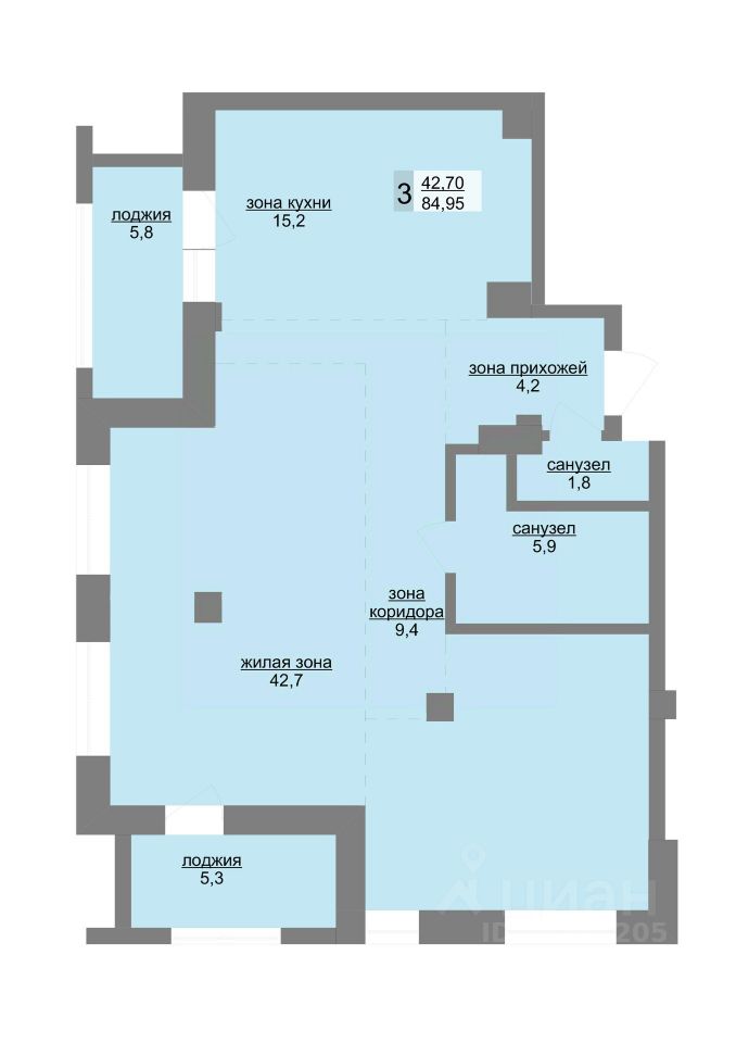 Общая площадь84,75 м²