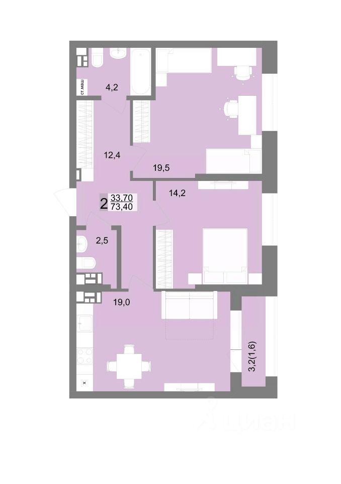 Продаётся 2-комнатная квартира в строящемся доме (Дом 1 секции 1-5), срок сдачи: II-кв. 2026, общей площадью 73.4 кв.м., на 4 этаже. Дом комфорт-класса на песчаном берегу Верх-Исетского пруда.