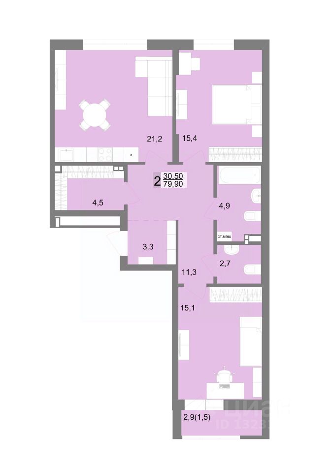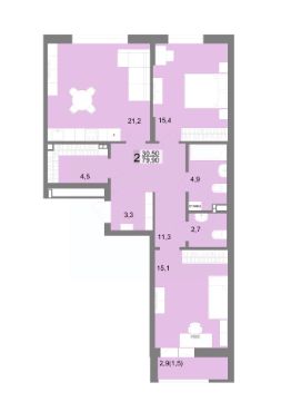 Продаётся 2-комнатная квартира в строящемся доме (Дом 1 секции 1-5), срок сдачи: II-кв. 2026, общей площадью 79.7 кв.м., на 5 этаже. Дом комфорт-класса на песчаном берегу Верх-Исетского пруда.