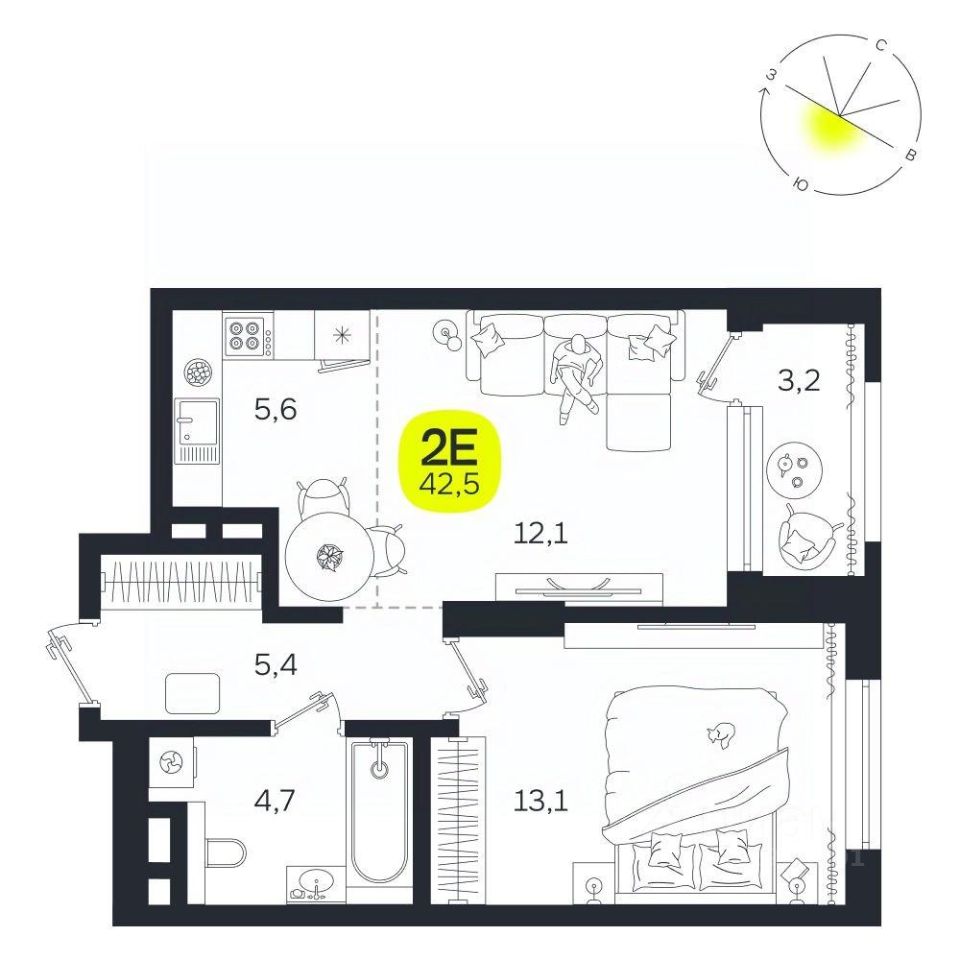 Общая площадь42,5 м²