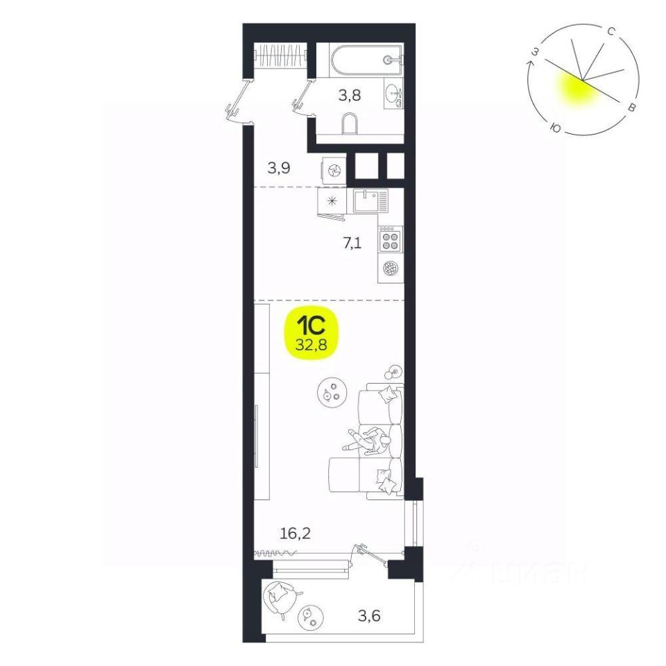 Общая площадь32,8 м²