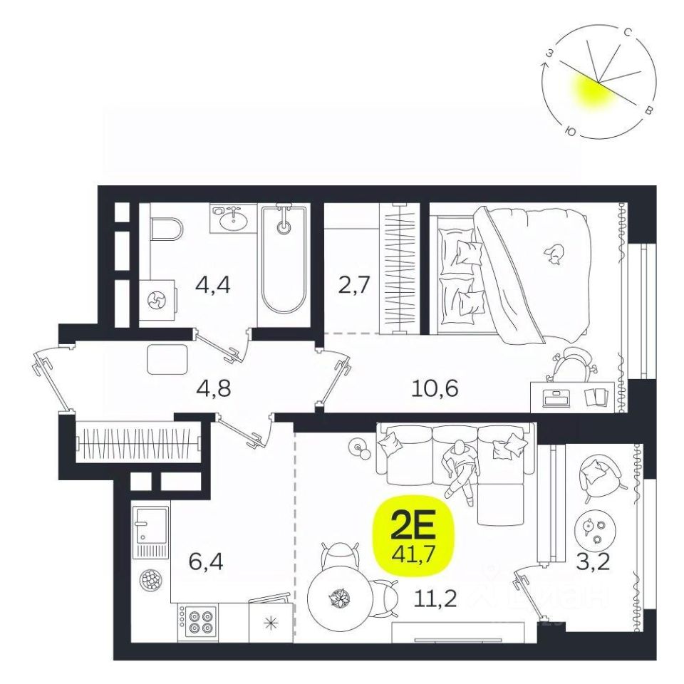 Общая площадь41,7 м²