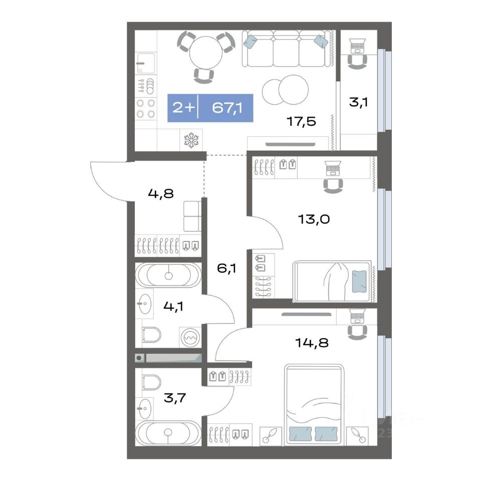 Продаётся 2-комнатная квартира в строящемся доме (Корпус 1.1), срок сдачи: III-кв. 2026, общей площадью 67.1 кв.м., на 10 этаже. Новый жилой комплекс "Толк Академический" от застройщика "СЗ Капитан" расположен по адресу: г. Екатеринбург, улица Академика Парина.