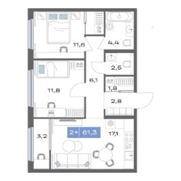 Продаётся 2-комнатная квартира в строящемся доме (Корпус 1.2), срок сдачи: III-кв. 2026, общей площадью 61.3 кв.м., на 8 этаже. Новый жилой комплекс "Толк Академический" от застройщика "СЗ Капитан" расположен по адресу: г. Екатеринбург, улица Академика Парина.