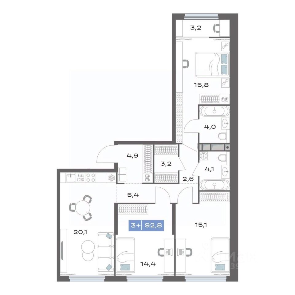 Продаётся 3-комнатная квартира в строящемся доме (Корпус 1.2), срок сдачи: III-кв. 2026, общей площадью 92.8 кв.м., на 14 этаже. Новый жилой комплекс "Толк Академический" от застройщика "СЗ Капитан" расположен по адресу: г. Екатеринбург, улица Академика Парина.