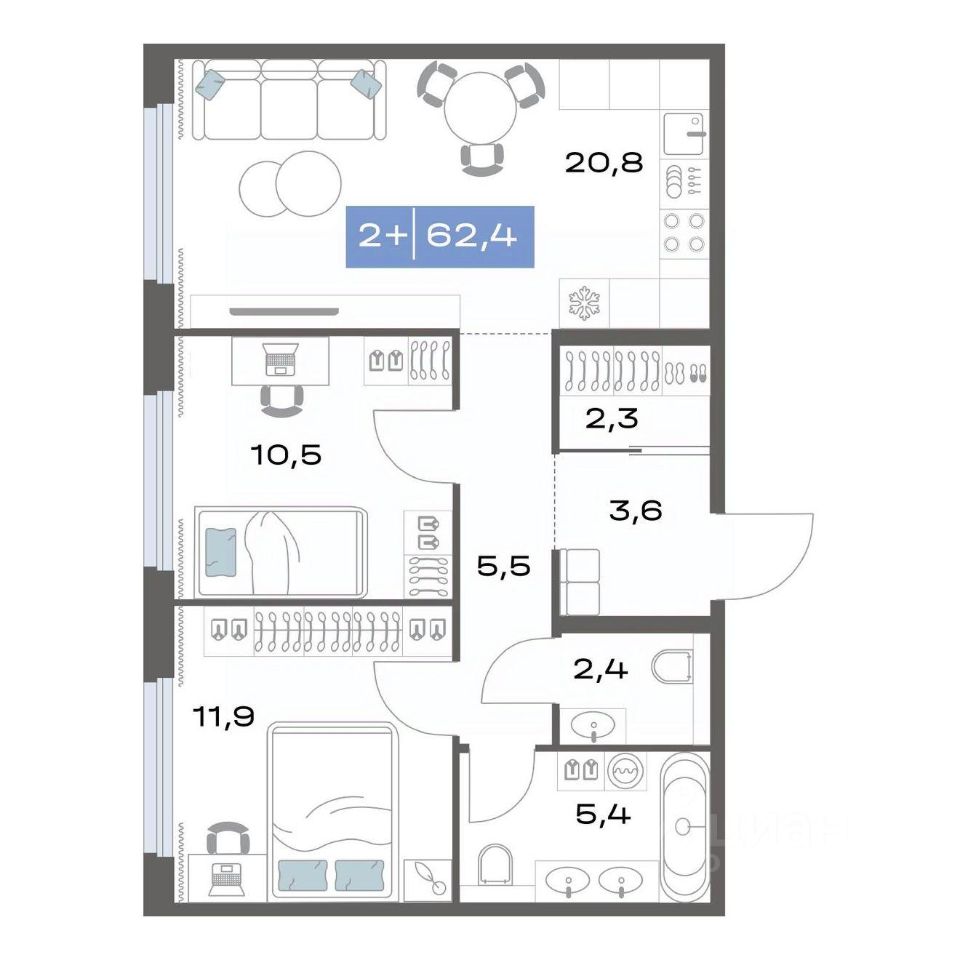 Продаётся 2-комнатная квартира в строящемся доме (Корпус 1.4), срок сдачи: III-кв. 2026, общей площадью 62.4 кв.м., на 4 этаже. Новый жилой комплекс "Толк Академический" от застройщика "СЗ Капитан" расположен по адресу: г. Екатеринбург, улица Академика Парина.