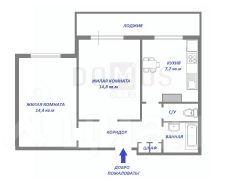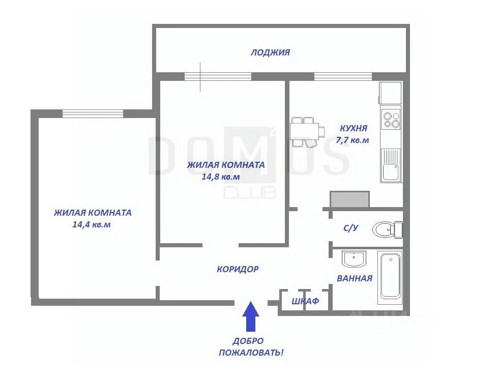 Продается светлая двухкомнатная квартира в доме улучшенной планировки. Все комнаты ИЗОЛИРОВАНЫ ( 14,4 и 14,8 кв.м.) ,кухня 7,7 кв.м., огромная лоджия 6 кв.м. на два окна. Дополнительно есть кладовка на этаже около 3 х метров. Окна выходят ВО ДВОР- на школу. Квартира светлая, теплая.