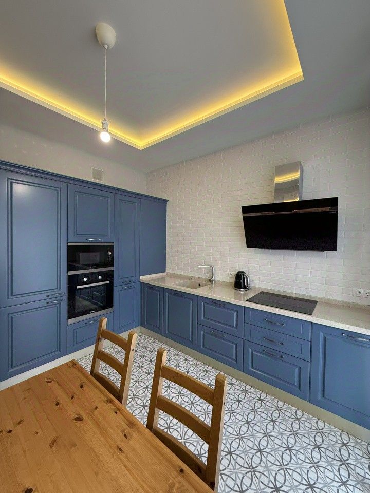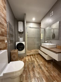 В квартире остается кухонный гарнитур со встроенной техникой BOSСH (варочная поверхность, духовой шкаф, свч печь, п/м машина, вытяжка, холодильник), система хранения в спальне и коридоре.