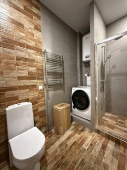 Теплый пол в прихожей, сан узле и кухне-гостиной. Высота потолков 3 м.