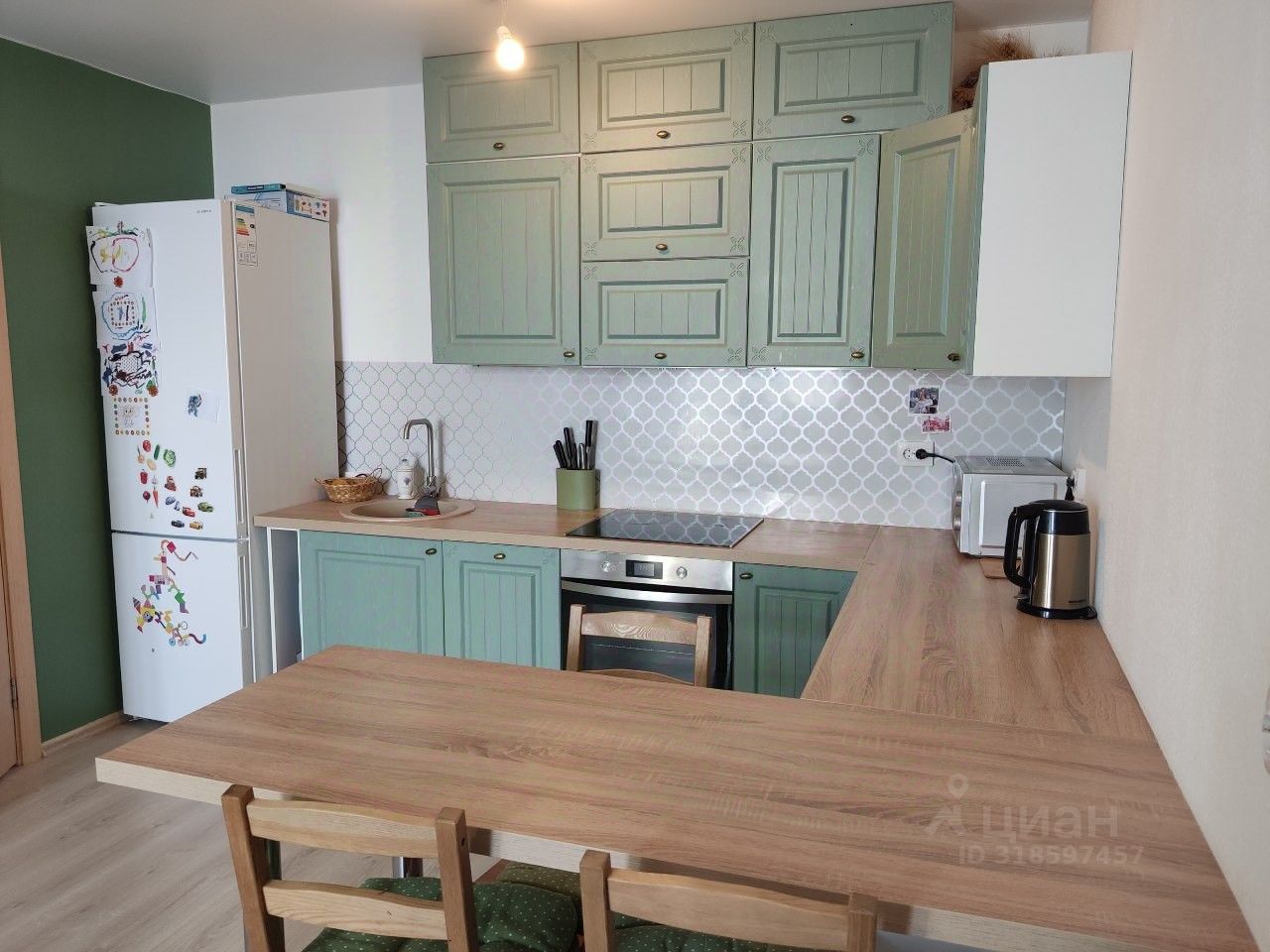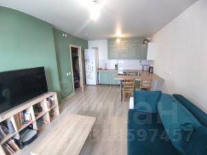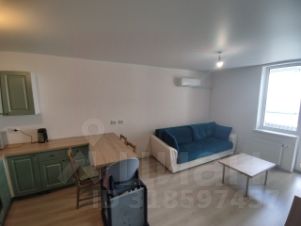 Большая гостиная с кухней: встроенный гарнитур, кондиционер