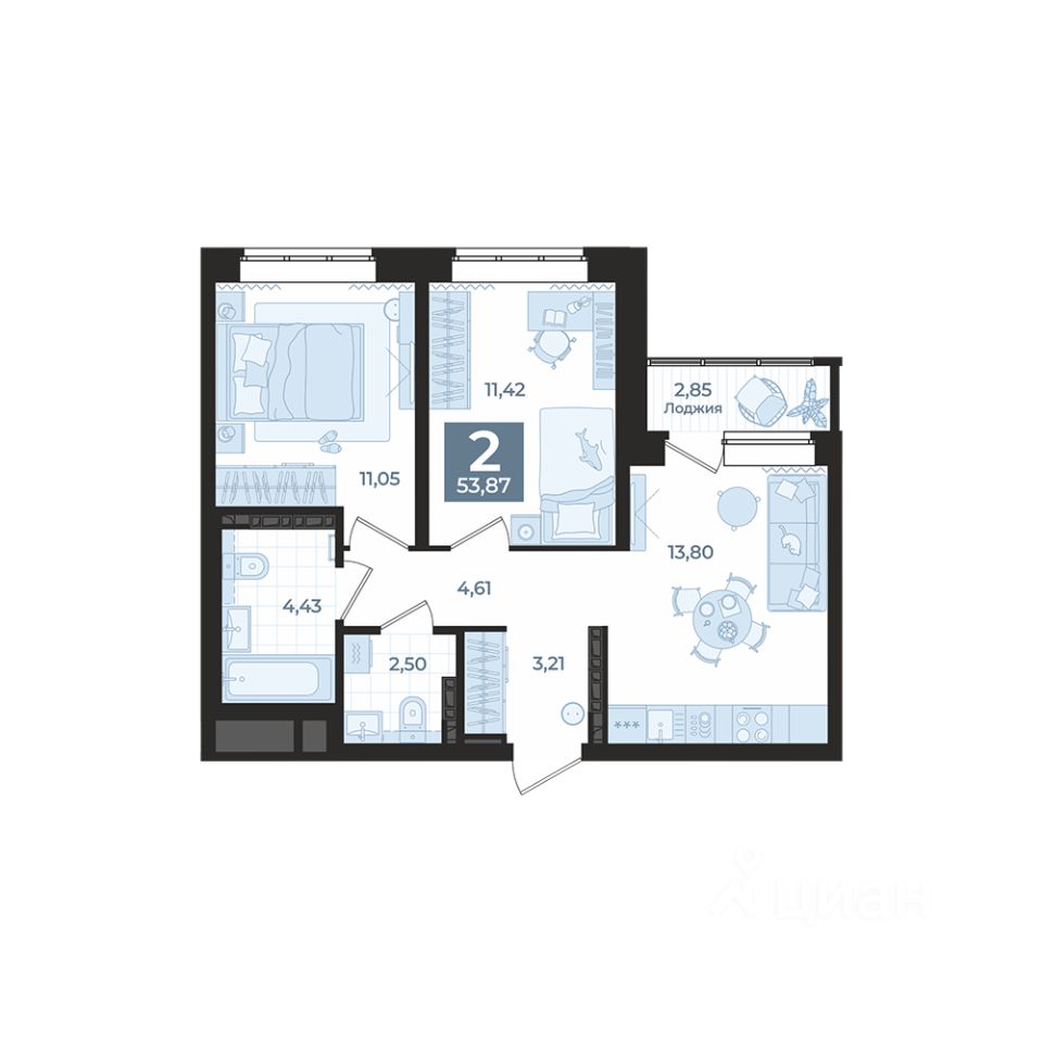 Разнообразные планировочные решения: от квартир с одной спальней для молодых пар до вариантов с тремя спальнями для семей с несколькими детьми. Для тех, кто хочет сделать дизайн-проект самостоятельно, мы предлагаем квартиры в предчистовом варианте, также можно заказать чистовую отделку.