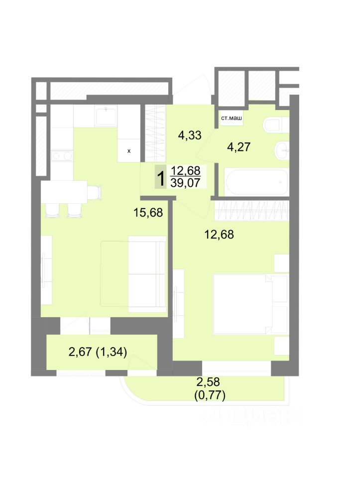 Продаётся 1-комнатная квартира в строящемся доме (Дом 1Д), срок сдачи: II-кв. 2027, общей площадью 39.07 кв.м., на 15 этаже. с Квартал расположен между двумя микрорайонами - Академический и Широкая речка на пересечении улиц Тенистая-Краснолесья-Соболева. Вы сможете пользоваться преимуществами сразу двух районов! 30 минут до центра города на машине, 9 минут до Объездной дороги, если хочется выехать на природу. В шаговой доступности есть несколько школ, детских садов и спортивных секций. А еще один детский сад на 350 мест уже построен на территории самого квартала. Большой двор, разделен на рекреационные зоны. Есть площадки для малышей и подростков с безопасным покрытием, зоны ворк-аута для предпочитающих здоровый образ жизни, прогулочные дорожки для бесед с друзьями или соседями. Безопасность - важное преимущество эко-квартала. Вход на территорию осуществляется с помощью Face ID или через мобильное приложение. Входные группы оформлены в соответствии с архитектурной концепцией всего квартала, ведь всегда приятно заходить в красиво оформленный подъезд. На всех этажах предусмотрена навигационная система, чтобы ваши гости точно не заблудились! В третьей очереди квартала "На Тенистой" есть несколько уникальных планировок, в том числе с мастер-спальнями, с открытыми балконами, с панорамным остеклением лоджии. А чтобы вы точно подобрали то, что по душе, в продаже представлены все виды комнатности - от студий до трехкомнатных. Мы за быстрый переезд, поэтому все квартиры сдаются с отделкой "под ключ": поклеены обои под покраску, постелен ламинат, установлены окна, обустроен санузел, поставлены счетчики, проведена разводка. До встречи на Тенистой. Здесь всегда хорошо! Окончание строительства: III квартал 2026г.