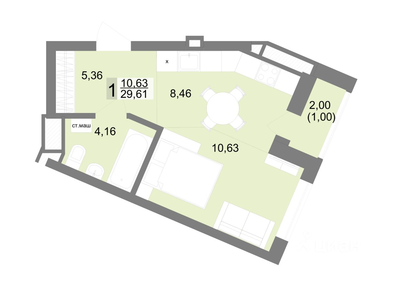 Общая площадь29,61 м²