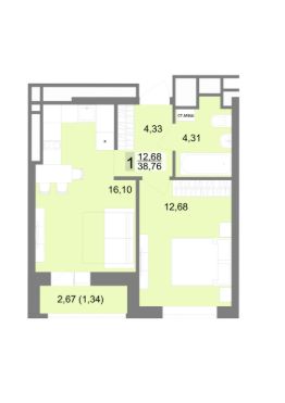 Общая площадь38,76 м²