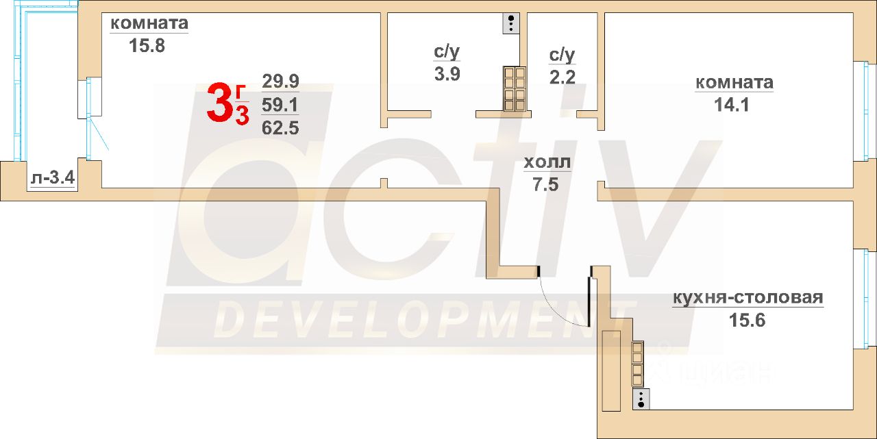 59,1 м²