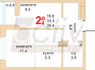 Общая площадь34,4 м²