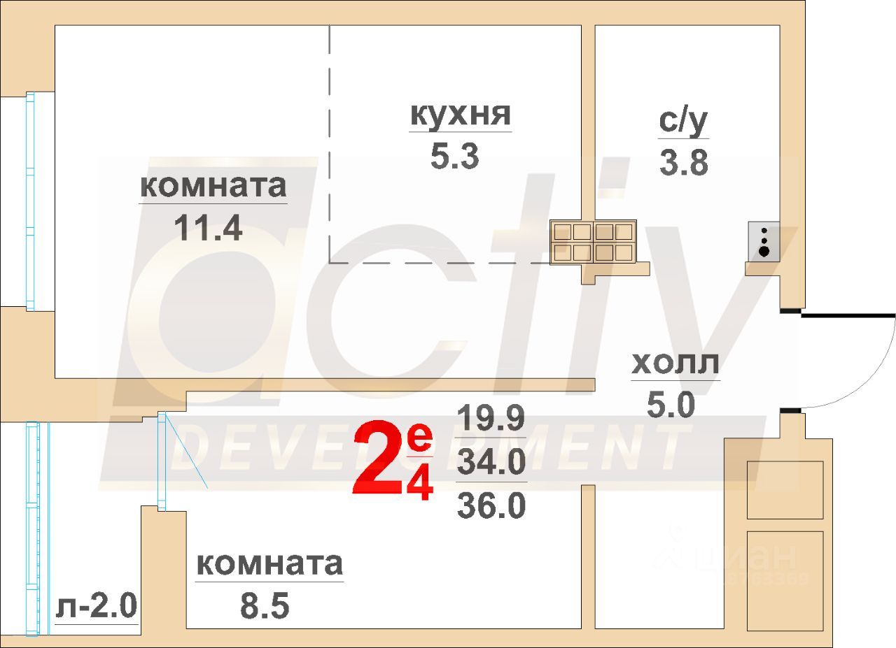 34 м²