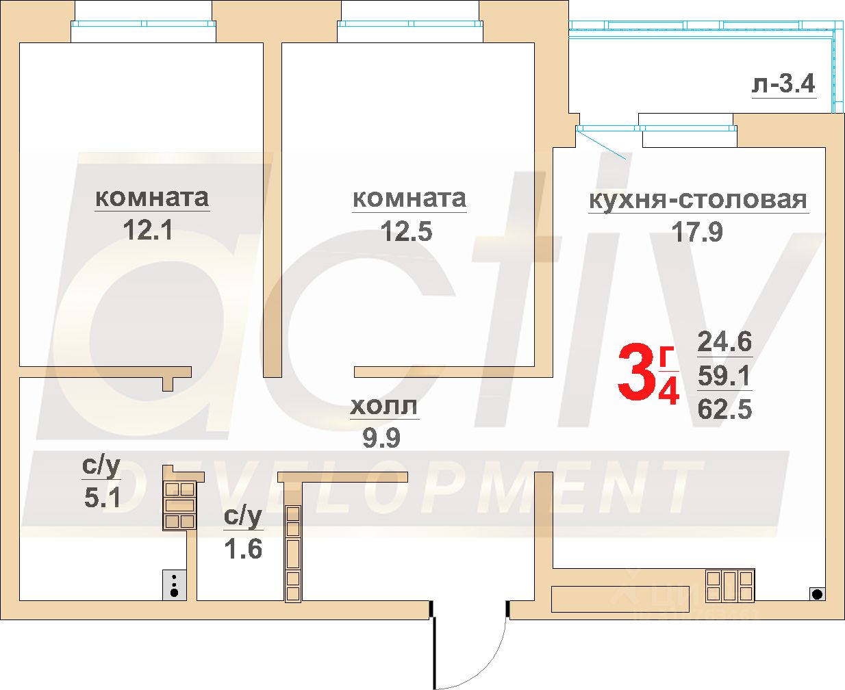 59,1 м²