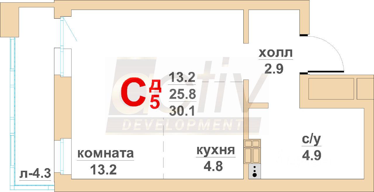 Общая площадь25,8 м²