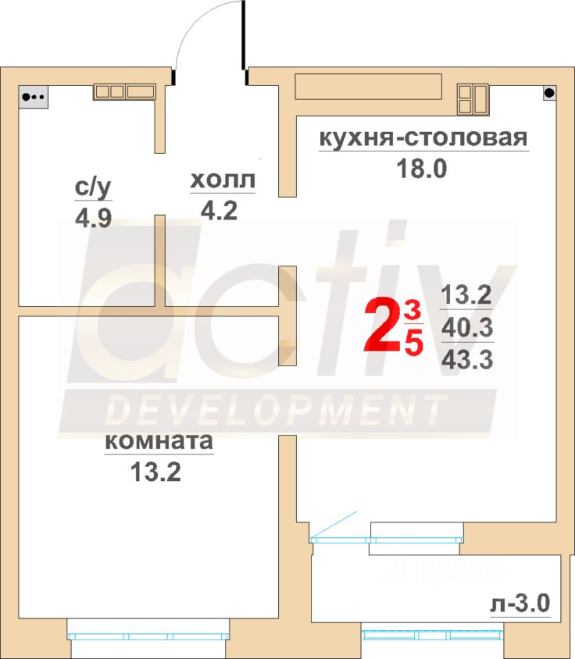 Общая площадь40,3 м²