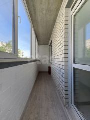 Окна VEKA с 70-миллиметровым профилем обеспечивают тепло- и шумоизоляцию, входная дверь TOREX гарантирует безопасность. Установлены счетчики на горячую и холодную воду, отопление, а также смонтирована принудительная приточно-вытяжная вентиляция для комфортного микроклимата. Дом относится к энергоэффективному классу В за счет кирпичных стен толщиной 750 мм с утепляющей прослойкой. Балкон площадью 6 м² застеклен, конструкция позволяет при необходимости утеплить его. В шестиэтажном здании работает просторный лифт CANNY.