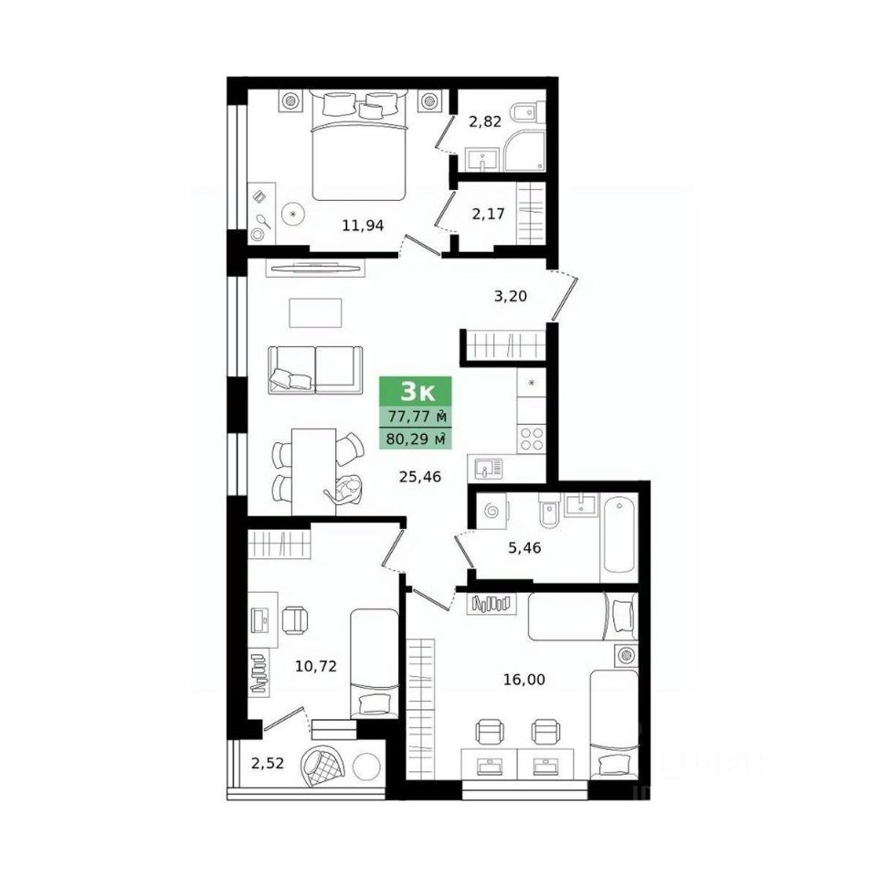 Общая площадь80,29 м²