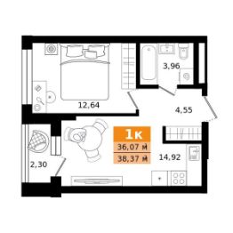 Общая площадь38,37 м²