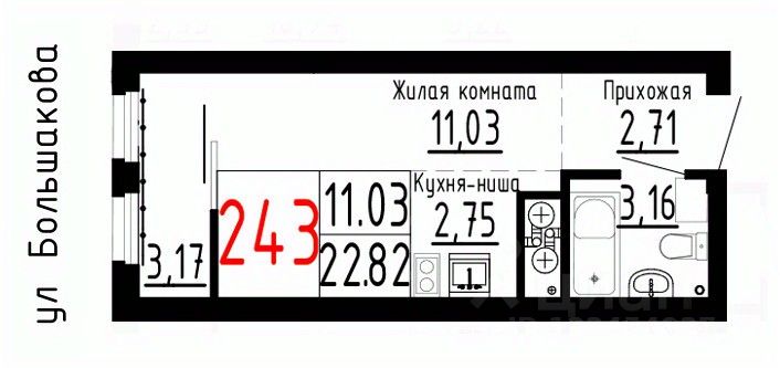 22,82 м²