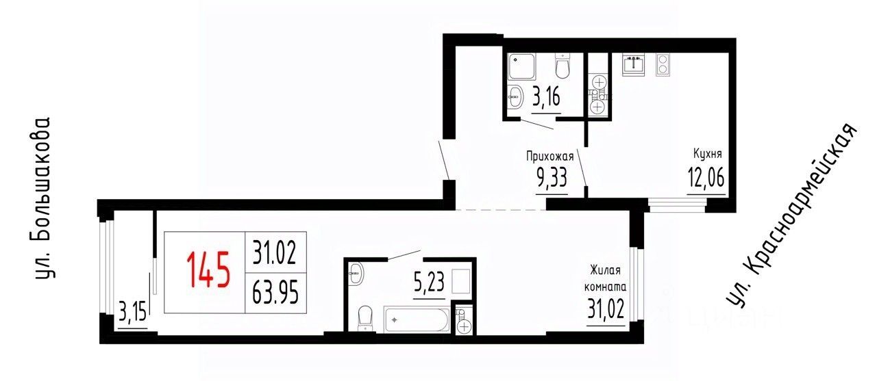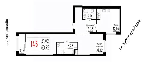 Продаётся 1-комнатная квартира в строящемся доме (Дом 1 секции 1-2), срок сдачи: II-кв. 2026, общей площадью 63.95 кв.м., на 2 этаже. Новый жилой комплекс "Лувр" от застройщика "СЗ Нижнеисетский пруд" расположен по адресу: г. Екатеринбург, улица Большакова.