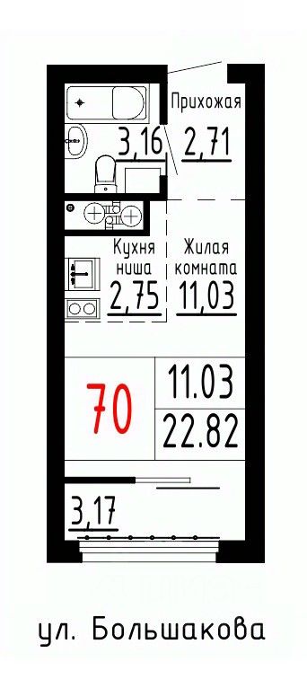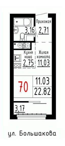 Общая площадь22,82 м²