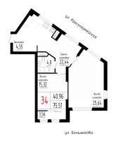 Продаётся 2-комнатная квартира в строящемся доме (Дом 1 секция 1), срок сдачи: II-кв. 2026, общей площадью 75.51 кв.м., на 6 этаже. Новый жилой комплекс "Лувр" от застройщика "СЗ Нижнеисетский пруд" расположен по адресу: г. Екатеринбург, улица Большакова.