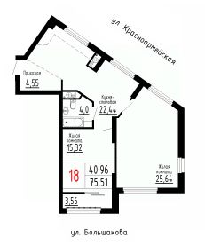 Продаётся 2-комнатная квартира в строящемся доме (Дом 1 секция 1), срок сдачи: II-кв. 2026, общей площадью 75.51 кв.м., на 4 этаже. Новый жилой комплекс "Лувр" от застройщика "СЗ Нижнеисетский пруд" расположен по адресу: г. Екатеринбург, улица Большакова.