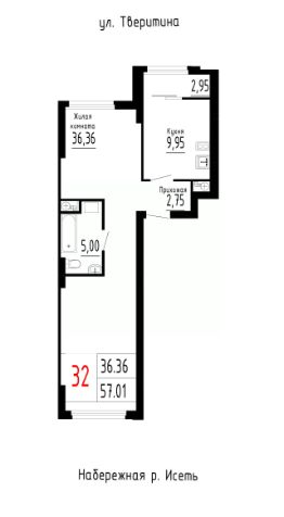57,01 м²
