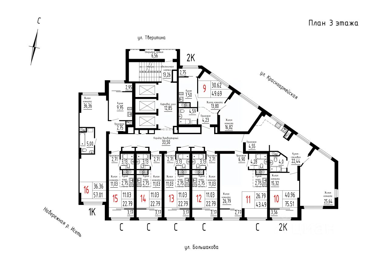 Продаётся 2-комнатная квартира в строящемся доме (Дом 1 секция 1), срок сдачи: II-кв. 2026, общей площадью 75.51 кв.м., на 3 этаже. Новый жилой комплекс "Лувр" от застройщика "СЗ Нижнеисетский пруд" расположен по адресу: г. Екатеринбург, улица Большакова.