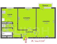 Квартира имеет площадь 43,4 квадратных метра и функциональную планировку, включающую раздельный санузел и балкон с видом на улицу. Кухня площадью 6 квадратных метров идеально подойдёт для приготовления любимых блюд.