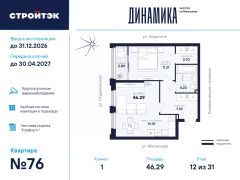 Настройте жизнь на максимум В Динамике воплощают мечты. Её фасады стремятся ввысь и рисуют силуэт ступеней — символа вашего движения, где всё задуманное сбывается. В интеллигентном микрорайоне Втузгородок всё под рукой. Пешком до остановки 5 минут, на машине до центра — 10. Соседство с торговыми комплексами и доступность ЕКАД входят в число преимуществ квартала наравне с близостью УРФУ, главных театров, филармонии, школ и детсадов. Рядом озеро Шарташ, которому около миллиона лет. Здесь катаются на сапах, лодках и катамаранах, а в Шарташском лесопарке вокруг озера — на велосипедах летом и лыжах зимой. Новое звучание района Выразительные башни Динамики притягивают взгляды издалека. Сплошные стеклянные витражи фасадов меняют восприятие проекта в зависимости от ракурса, времени года и суток. В квартирах с витражным остеклением оконные рамы из алюминия и широкие подоконники визуально увеличивают пространство. Благодаря современным технологиям витражи обеспечивают дополнительную теплоизоляцию, помогая сохранять комфортный микроклимат в квартире и летом, и зимой. Отдых в вашем ритме Выбирайте досуг по душе для себя и семьи. Занимайтесь на тренажёрах и воркаут-комплексе, играйте в пинг-понг, футбол или баскетбол. Для детей — насыщенный плейхаб, который тренирует тактильность и равновесие в атмосфере безопасности и контролируемого риска. Размеренно прогуливайтесь меж декоративных холмов, под тенистыми навесами-перголами вблизи удобных скамеек, многолетних трав и разновысотной уличной мебели. СТРОЙТЭК возводит Динамику в 3 этапа. Первый этап строительства Секция 1 — башня в 31 этаж. В ней 209 1- и 2-комнатных квартир и 21 уникальная планировка — как в классическом исполнении, так и с просторными кухнями-гостиными до 22 м². Мы сдадим дом в 4 квартале 2026 года и выдадим ключи не позднее 30 апреля 2027 года. В подъезде вас встретят просторные светлые холлы с уютным минималистичным дизайном бизнес-класса, комфортные помещения для колясок и самокатов, а также 3 надёжных лифта на 1 000 кг каждый. Живите легко — мы об этом уже позаботились. Автономная газовая котельная позволит не зависеть от центрального отопления, а закрытый паркинг на 82 места внутри стилобата с подъёмом до этажа избавит от лишней суеты. Технологии комфорта Обратите внимание на планировки с гардеробными и тёплыми лоджиями, где 5-камерный ПВХ-профиль заботливо защитит от непогоды. И особенно — специальный формат квартир с террасами на 2 этаже: здесь так приятно проводить время с гостями, загорать на шезлонгах или ужинать при свечах. В Динамике улучшенный стандарт отделки "Комфорт+". Помимо привычных комфортных сантехники и электрики, в него входят оконные стёкла Energy Light, которые помогают сохранять комфортную температуру, приточные клапаны вентиляции Air-Box и детские замки, особо прочный ламинат 33 класса и устойчивые к многократной покраске виниловые обои. Белые межкомнатные двери и плинтусы лаконично подчеркнут любую цветовую гамму, а надёжная сейф-дверь добавит спокойствия и беззаботны
