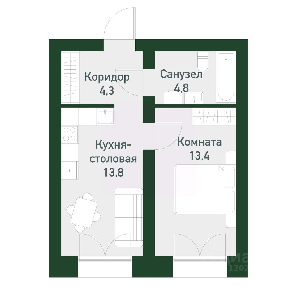 Общая площадь35,27 м²