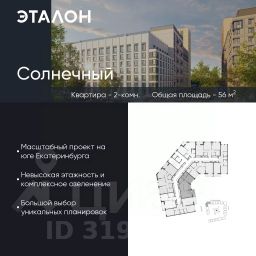 Продается квартира 172, по адресу ЖК "Солнечный", корпус Солнечный, блок 6.4 в Солнечный на 8 этаже, с площадью 56 м2.