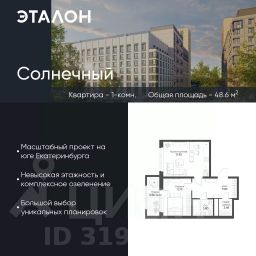 Продается квартира 266, по адресу ЖК "Солнечный", корпус Солнечный, корпус 6.2 в Солнечный на 5 этаже, с площадью 48.6 м2.