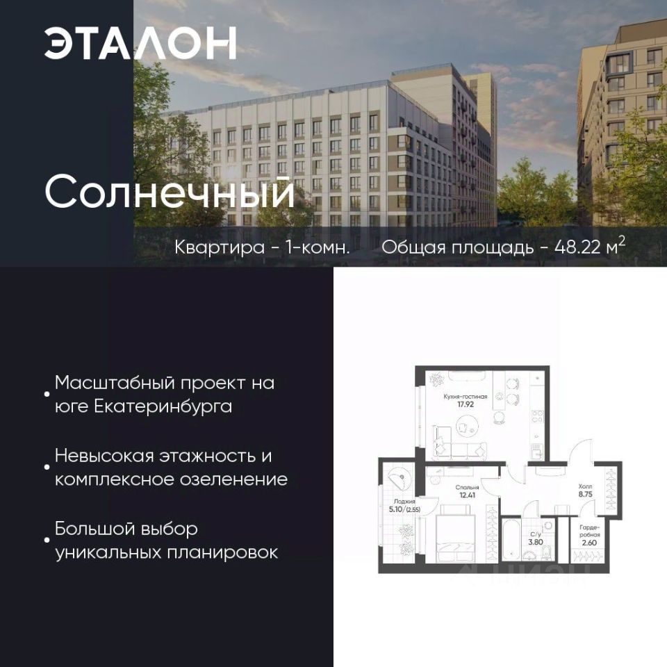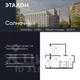 Продается квартира 301, по адресу ЖК "Солнечный", корпус Солнечный, корпус 6.2 в Солнечный на 12 этаже, с площадью 48.22 м2.
