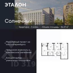 Продается квартира 124, по адресу ЖК "Солнечный", корпус Солнечный, корпус 6.2 в Солнечный на 14 этаже, с площадью 84.01 м2.