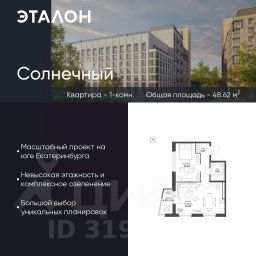 Продается квартира 582, по адресу ЖК "Солнечный", корпус Солнечный, корпус 6.2 в Солнечный на 9 этаже, с площадью 48.62 м2.