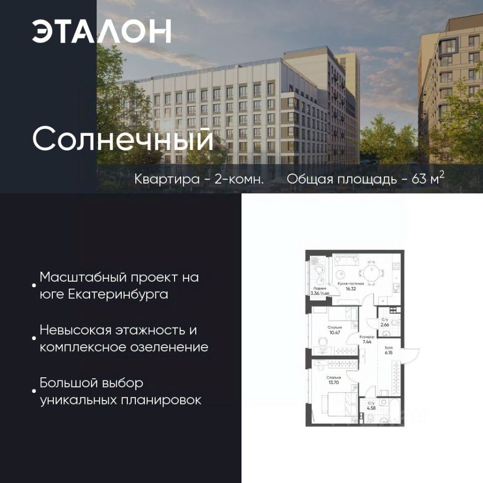 Продается квартира 489, по адресу ЖК "Солнечный", корпус Солнечный, блок 5.4, корпус 2 в Солнечный на 1 этаже, с площадью 63 м2.