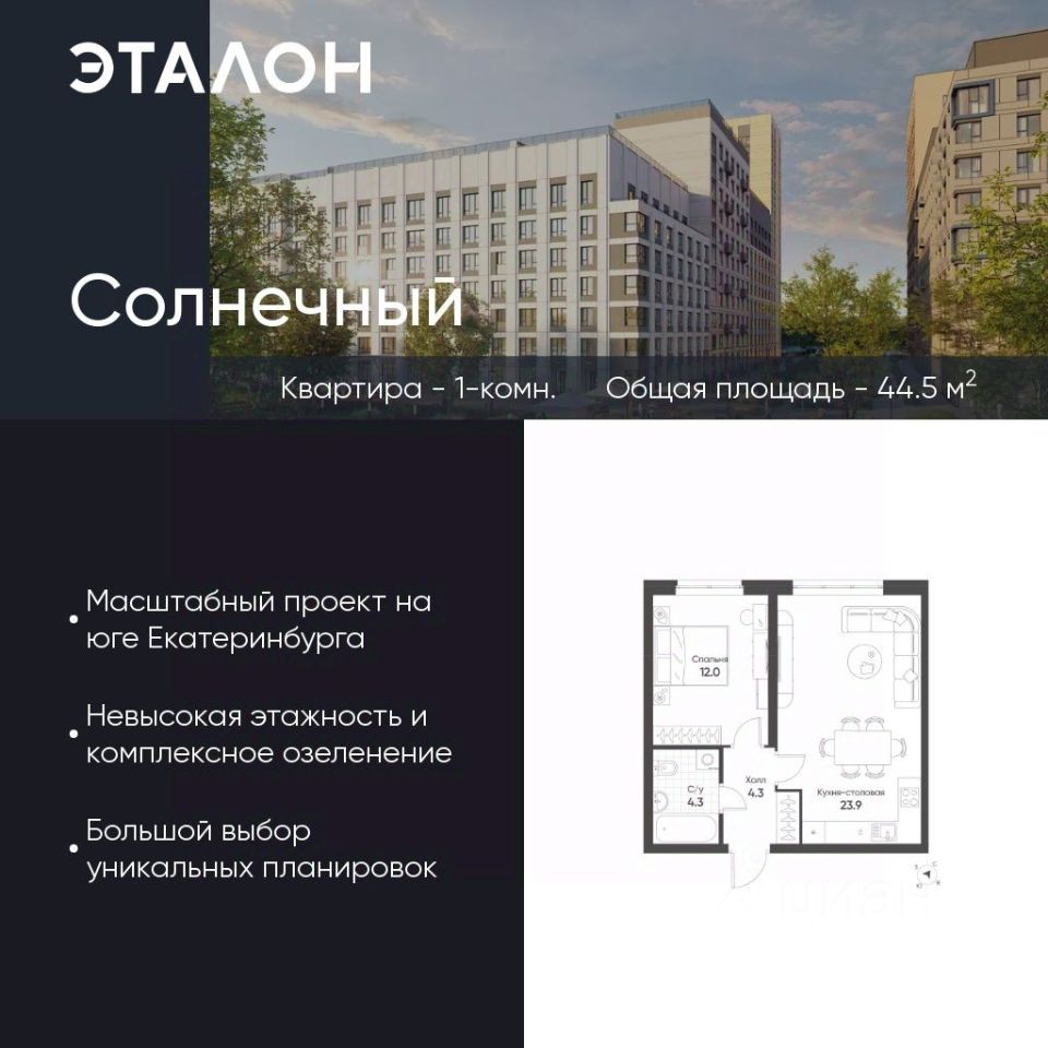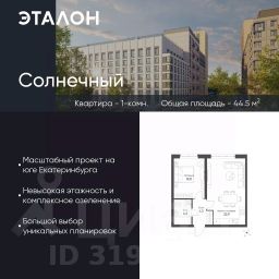 Продается квартира 52, по адресу ЖК "Солнечный", корпус Солнечный, блок 6.3 в Солнечный на 5 этаже, с площадью 44.5 м2.