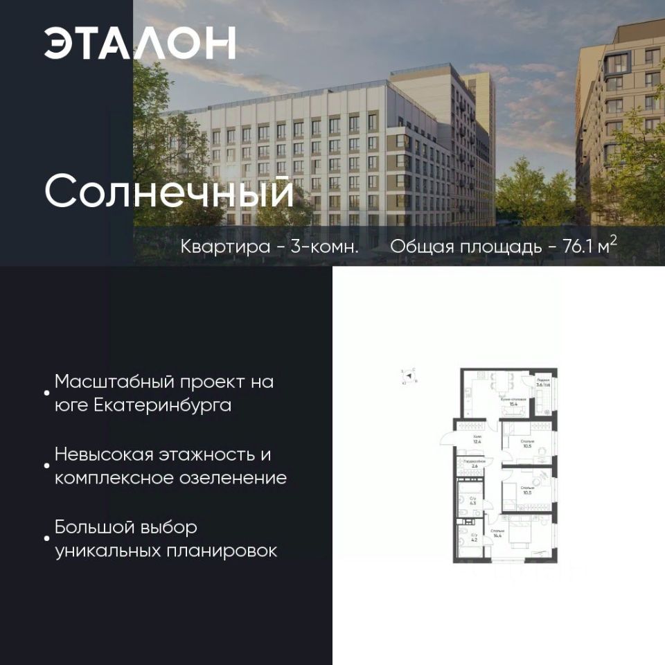 Продается квартира 238, по адресу ЖК "Солнечный", корпус Солнечный, блок 6.3 в Солнечный на 9 этаже, с площадью 76.1 м2.