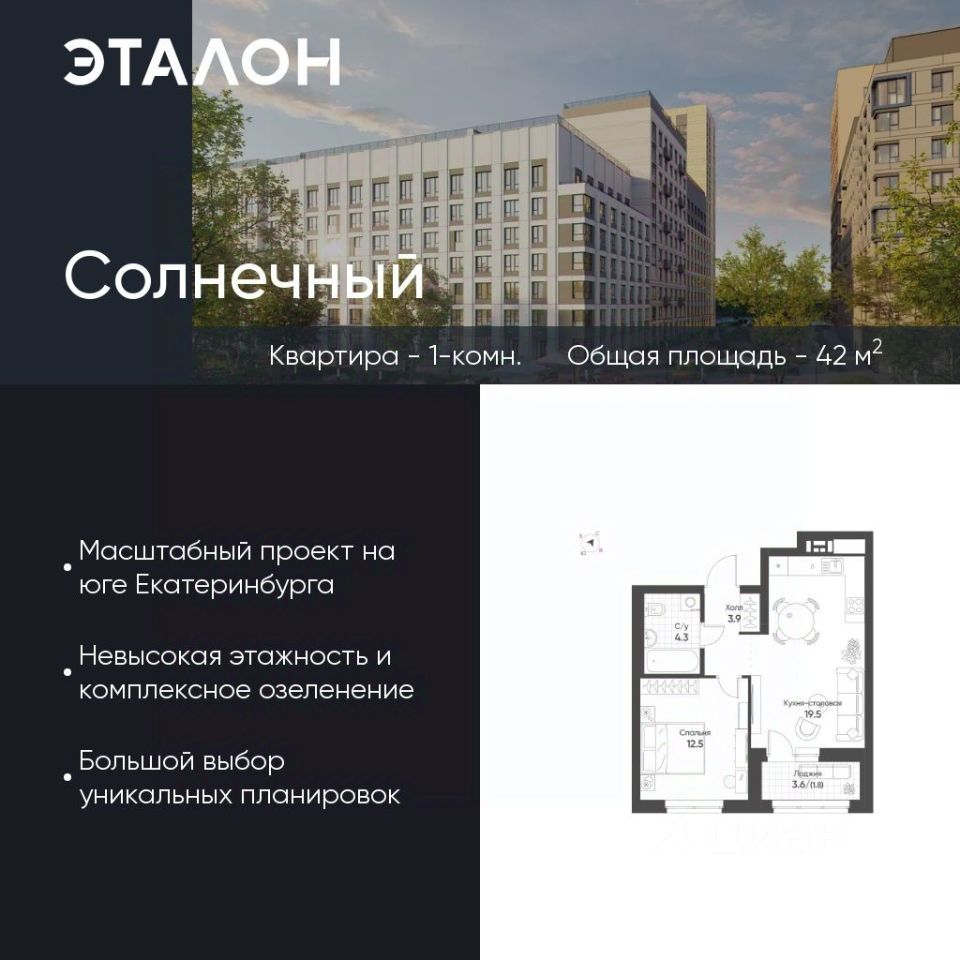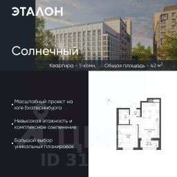 Продается квартира 487, по адресу ЖК "Солнечный", корпус Солнечный, блок 6.3 в Солнечный на 11 этаже, с площадью 42 м2.